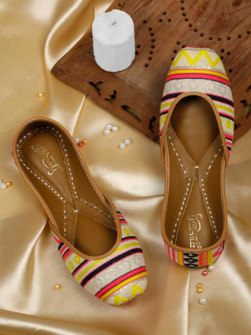 KASHIDAKARI FUCHSIA ROSE EMBELLISHED JUTTI